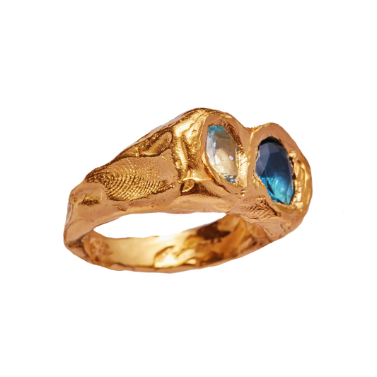 Antique Inlaid Blue Crystal Gold Ring